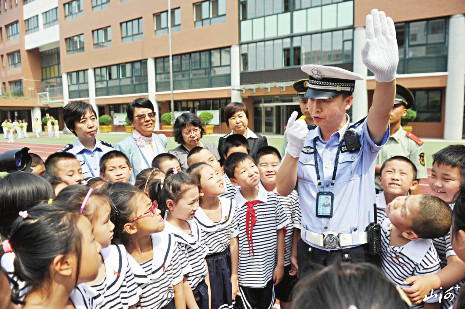 交警走进太原市大南关小学,为学生讲解交通安全知识。 山西晚报·山河+记者 寇宁摄
