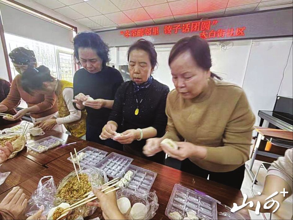 “我们的节日”活动中,社区工作人员组织居民在活动室包饺子。
