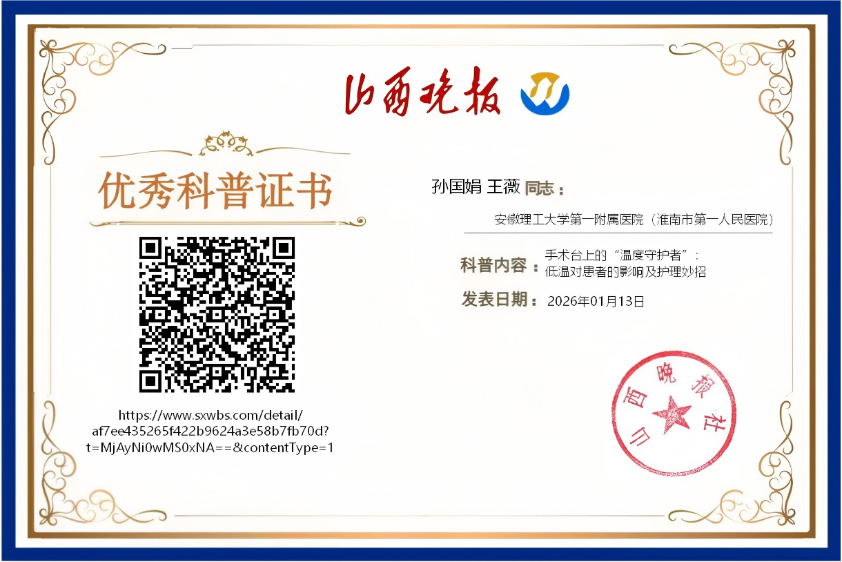 患者和家属的配合也是体温保护的重要组成部分。术前应主动告知医生自身健康状况,尤其是心血管疾病、糖尿病等影响体温调节的慢性病;手术当天按指导穿着病员服,进入手术室后若感觉寒冷及时告知医护人员。术后回到病房,家属要关注患者是否有寒战、皮肤苍白等低体温症状,及时反馈给医护人员,按医嘱增添被褥,配合做好保暖措施。