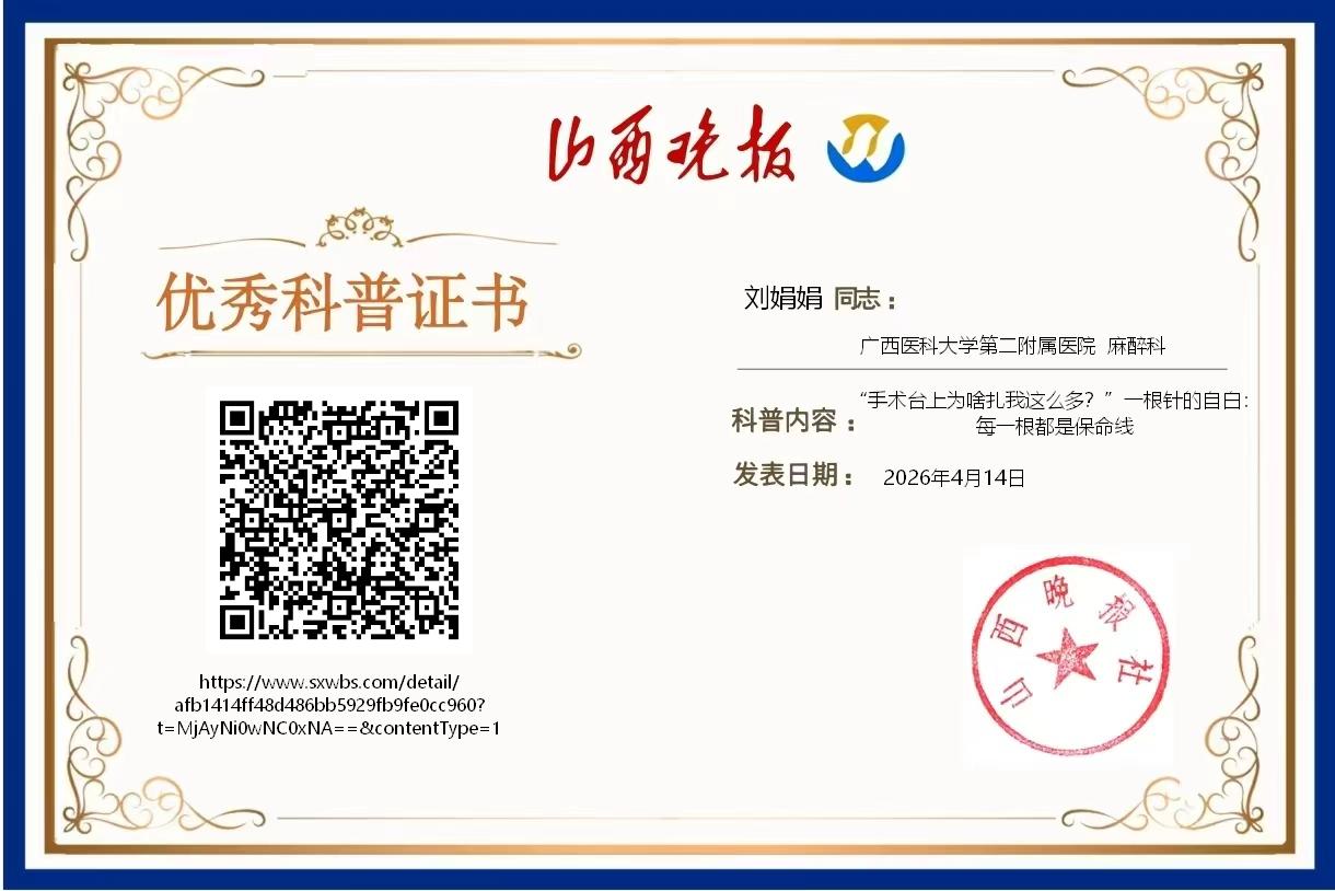 作者:广西医科大学第二附属医院 麻醉科 刘娟娟