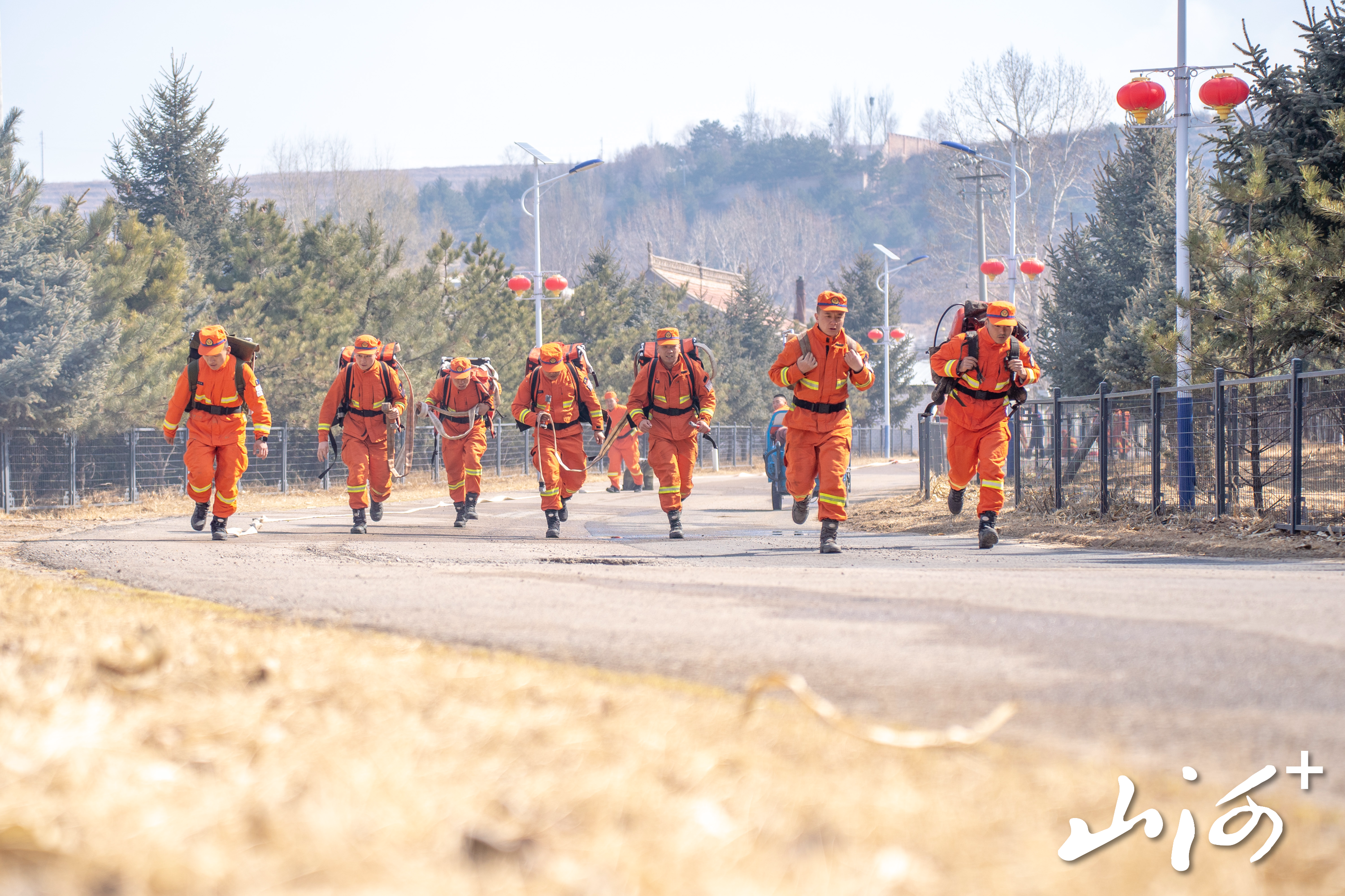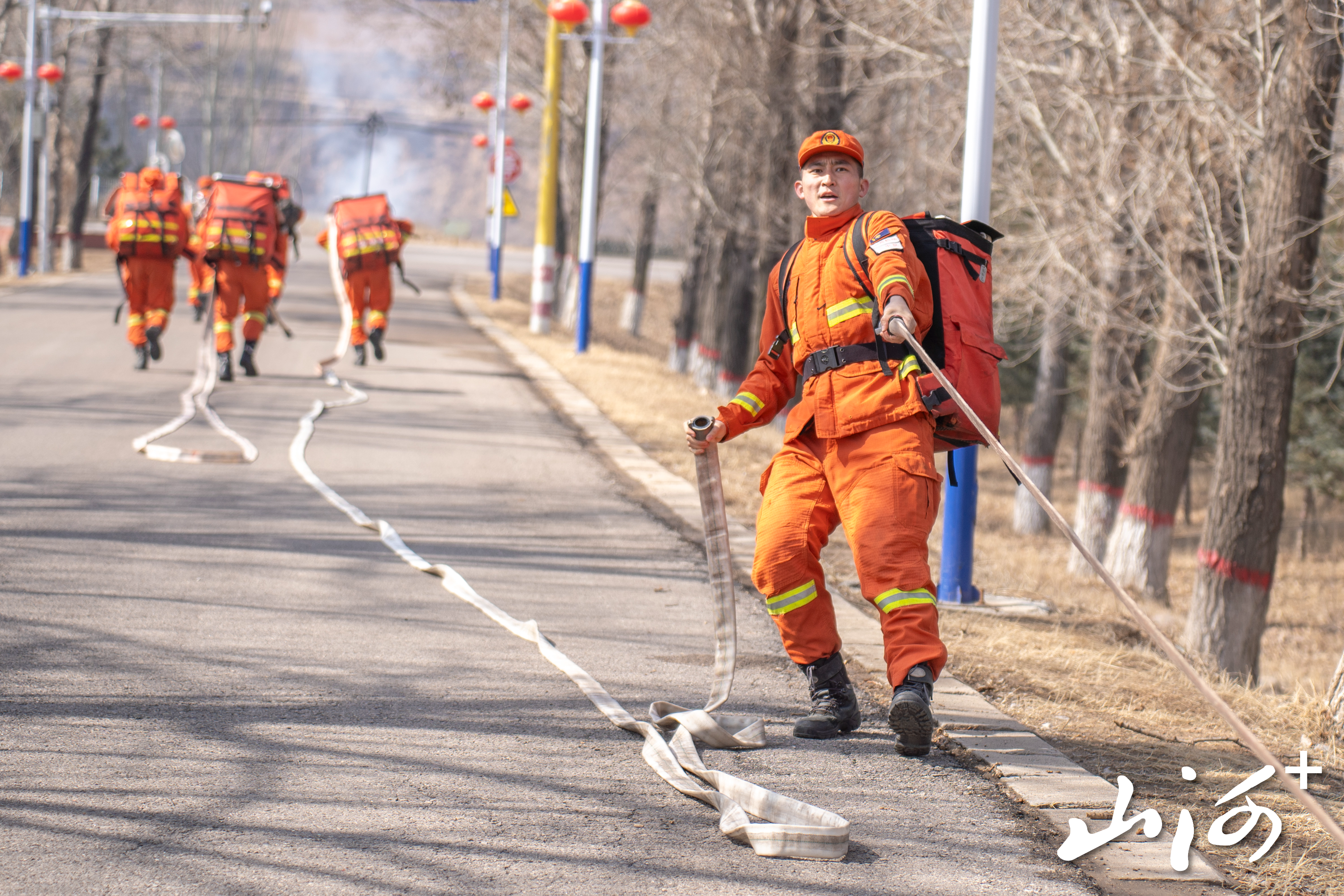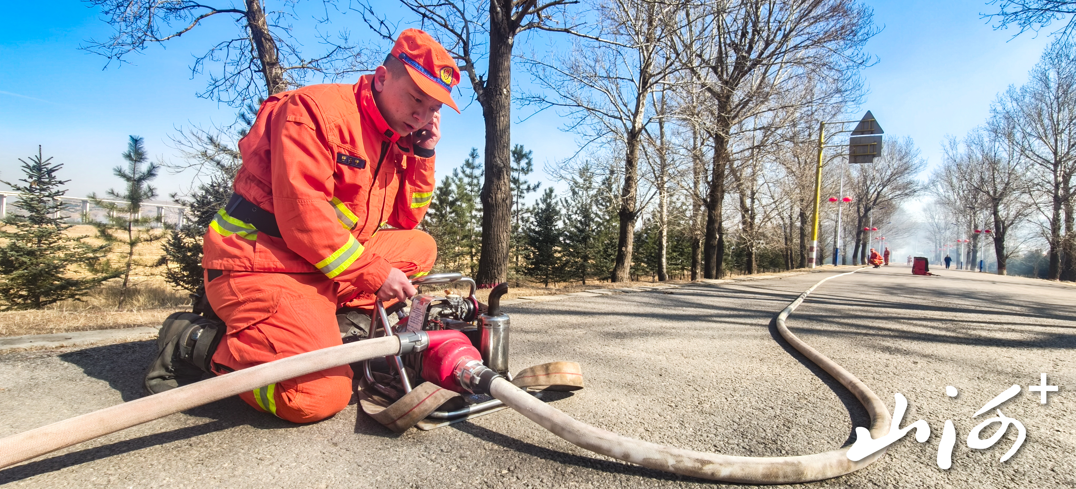 山西晚报·山河+讯 3月19日,太原消防救援机动支队大同大队在岢岚县开展水泵架设与撤收专项训练,以实战化训练夯实春季森林草原防灭火能力。