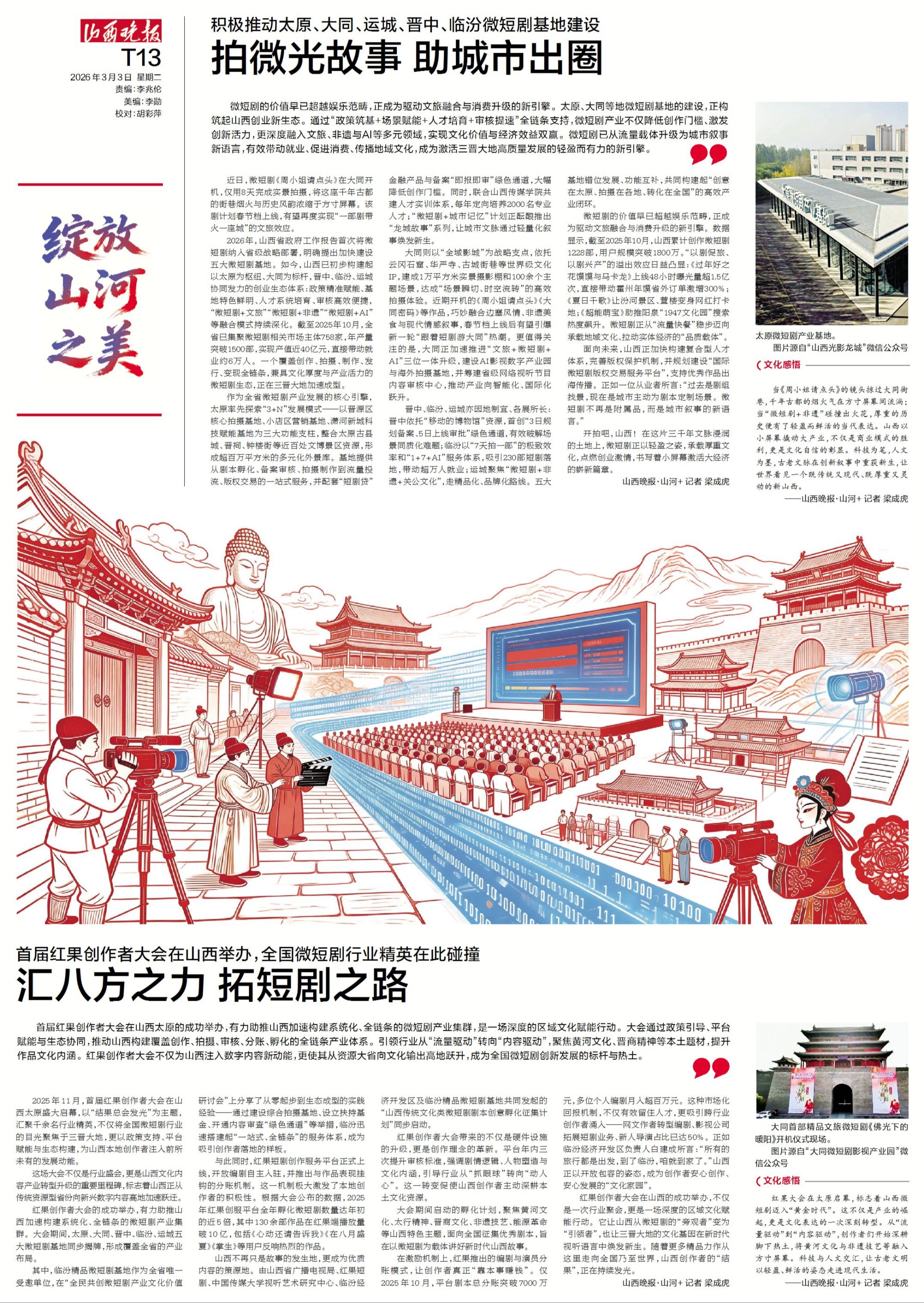 开拍吧,山西!在这片三千年文脉浸润的土地上,微短剧正以轻盈之姿,承载厚重文化,点燃创业激情,书写着小屏幕激活大经济的崭新篇章。