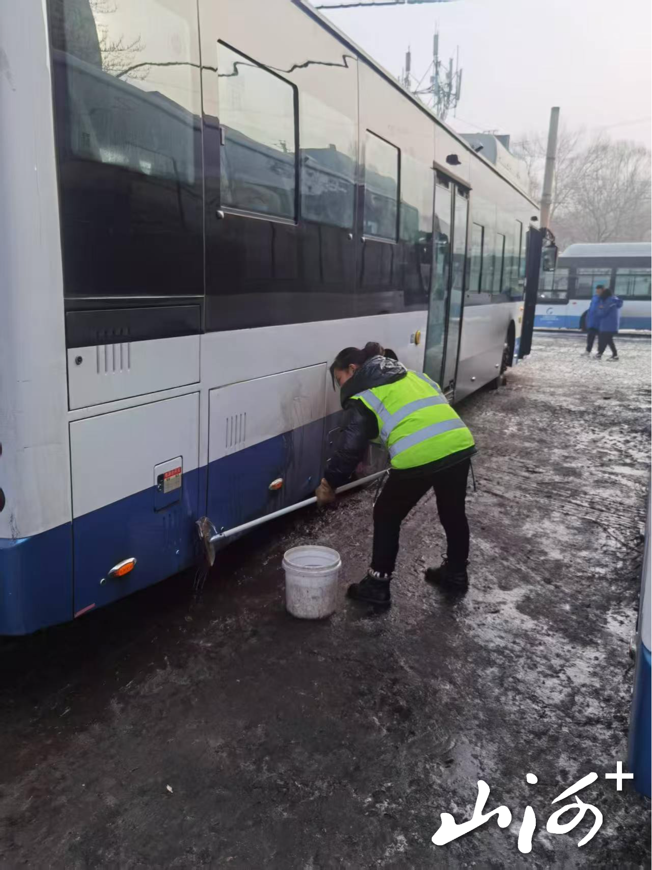 山西晚报·山河+讯 1月25日,降雪过后,太原公交一公司迅速响应,职工纷纷加入车辆清洁与运营保障工作中,全力落实“雪后车皮净”标准。