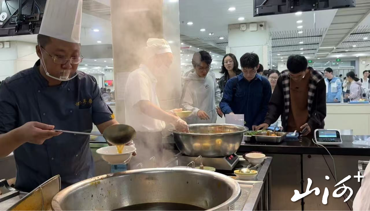 活动当天,食堂内早早便排起了长队,师生们循着香气驻足等候。羊心、羊肝、羊肠等新鲜食材在秘制高汤中慢火细炖,出锅时搭配怀仁本地土豆粉,淋上一勺秘制红油辣椒,瞬间色泽诱人。入口时,杂碎软烂不柴、入味十足,麻辣鲜香在舌尖交织,醇厚汤汁裹挟着食材本味,鲜而不腻。来自山西的学生们吃完后纷纷表示:“能在杭州吃到家乡味道,太惊喜了!”