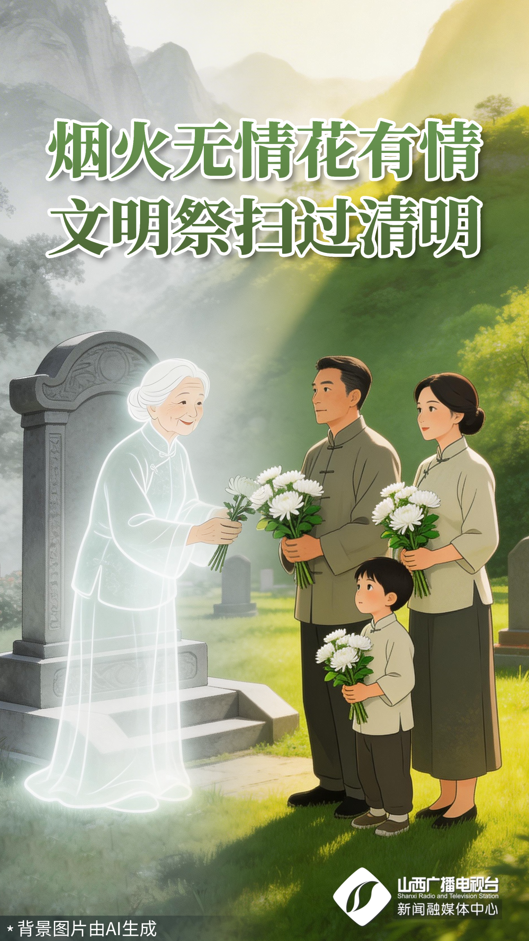 文明祭扫,贵在心意;烟火无情,花更有情。让我们用精神传承代替实物祭奠,让哀思融入环保行动,让清明更“清”更“明”。