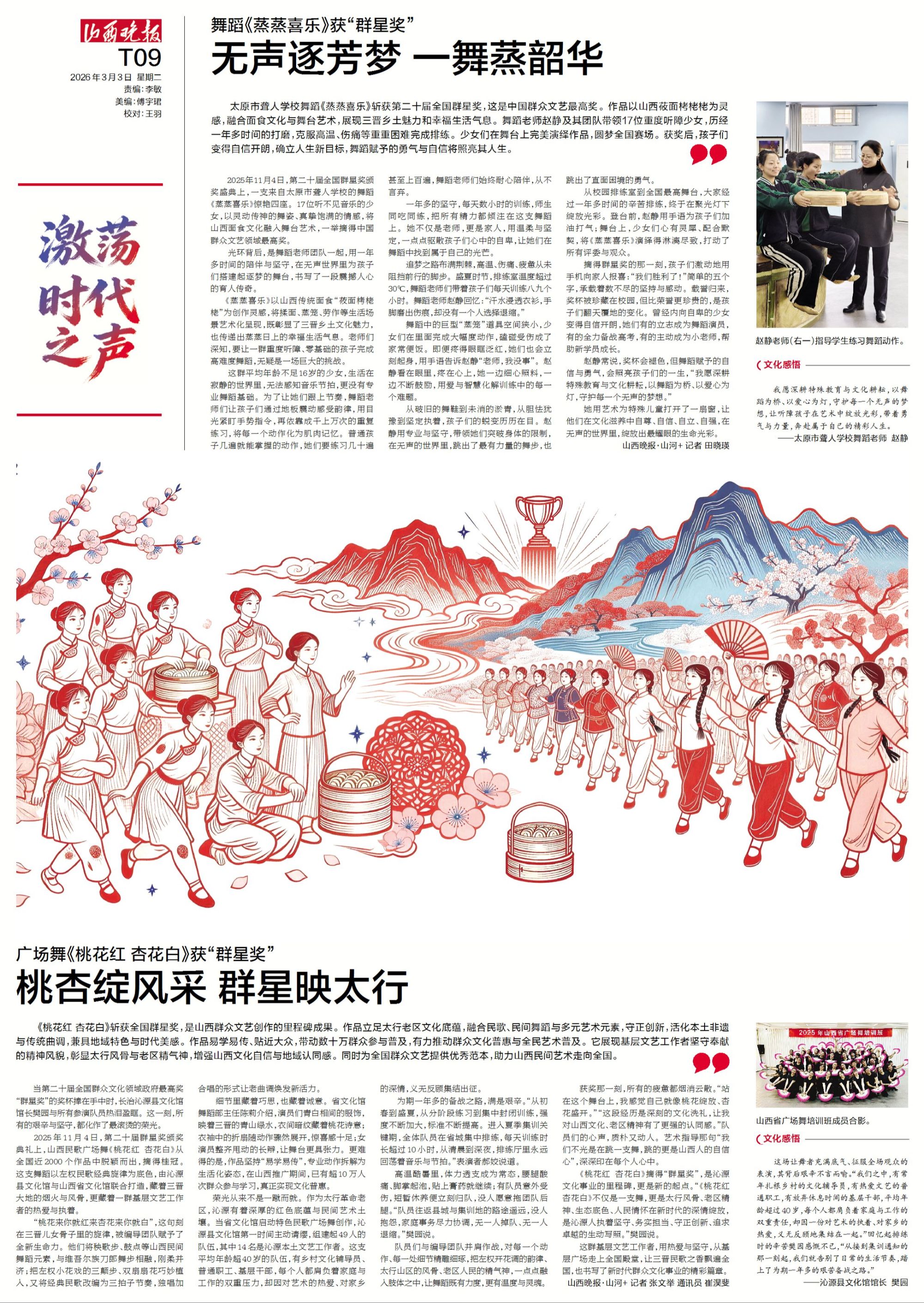 2025年11月4日,第二十届全国群星奖颁奖盛典上,一支来自太原市聋人学校的舞蹈《蒸蒸喜乐》惊艳四座。17位听不见音乐的少女,以灵动传神的舞姿、真挚饱满的情感,将山西面食文化融入舞台艺术,一举摘得中国群众文艺领域最高奖。