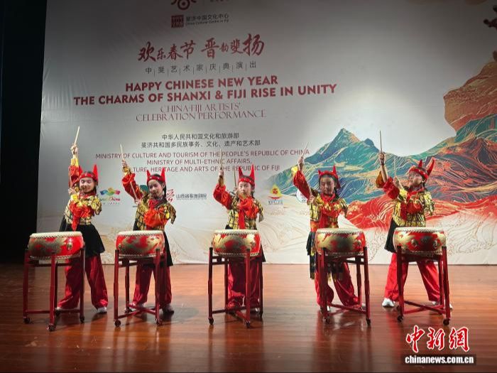 国家级非遗绛州鼓乐亮相斐济“欢乐春节”。张新 摄