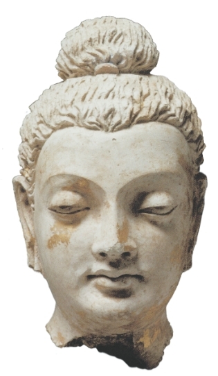 阿富汗哈达佛寺遗址出土泥塑菩萨头像。采自《大都会艺术博物馆中的犍陀罗艺术》