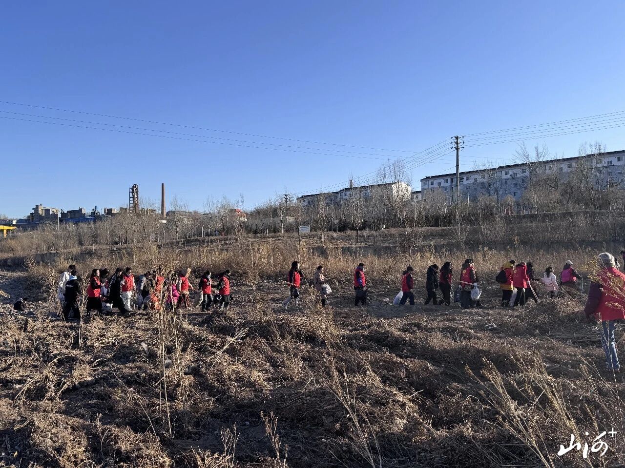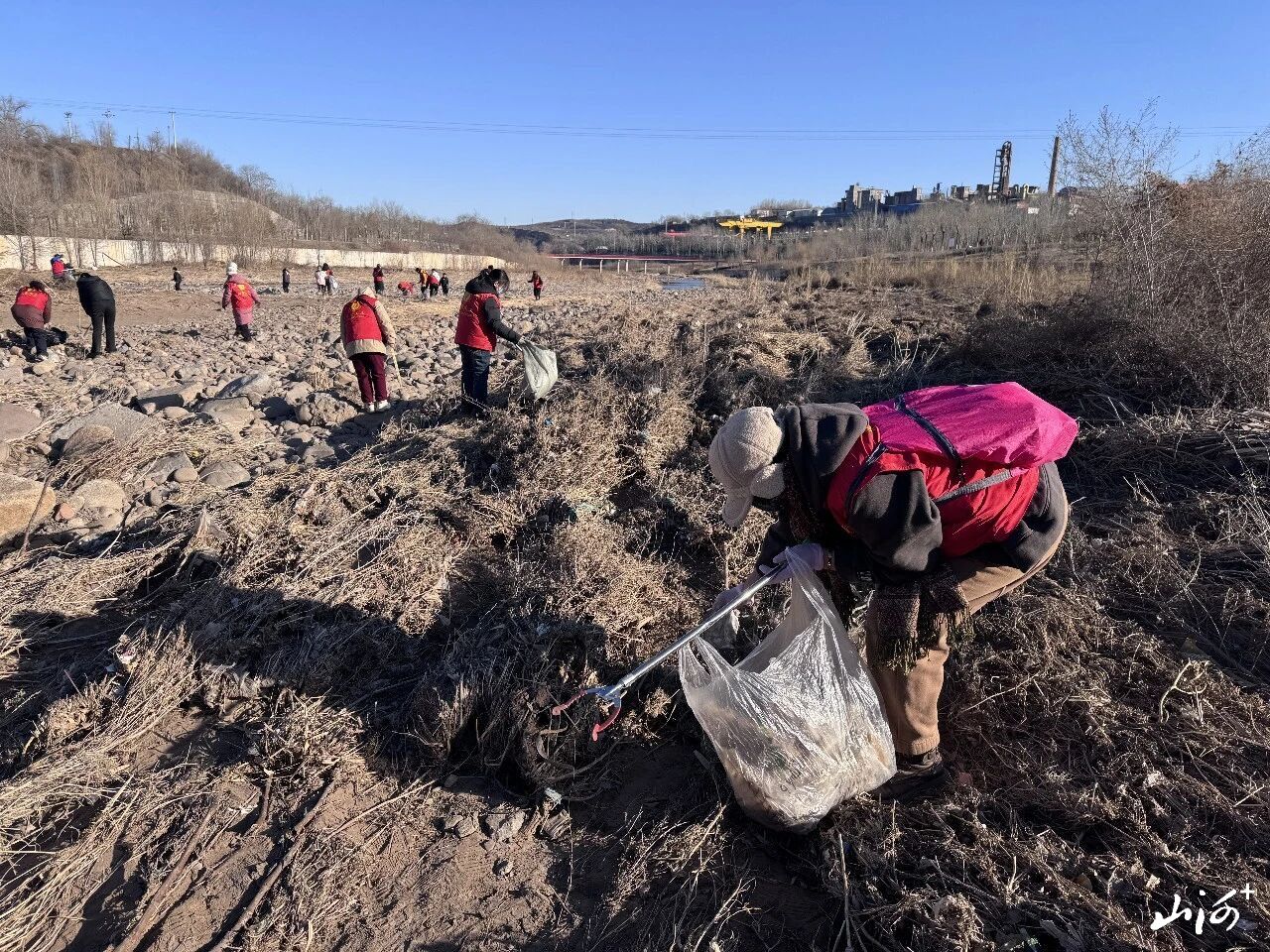 山西晚报·山河+讯 1月11日,阳泉市义工联合会41名义工和民间巡河员为爱集结,第39期“保护母亲河”巡河净滩活动在白羊墅湿地公园开展。