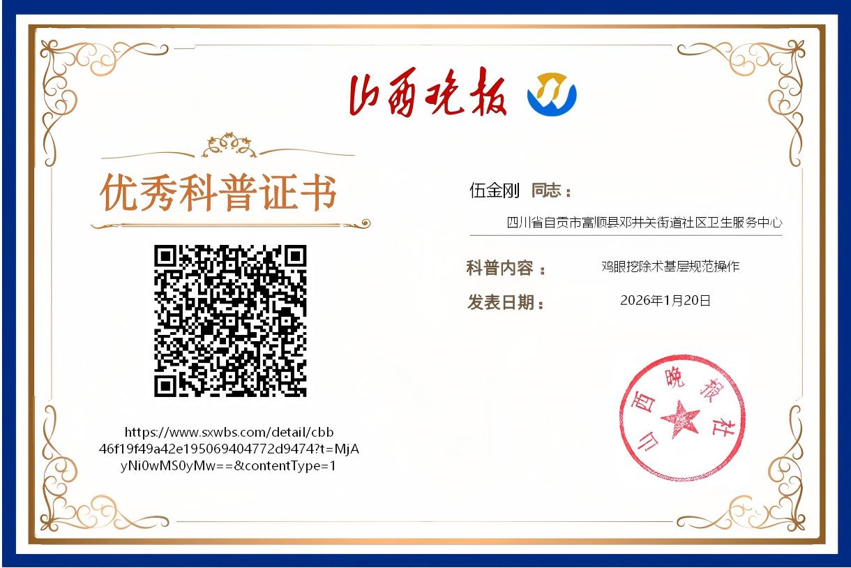 作者:四川省自贡市富顺县邓井关街道社区卫生服务中心 伍金刚