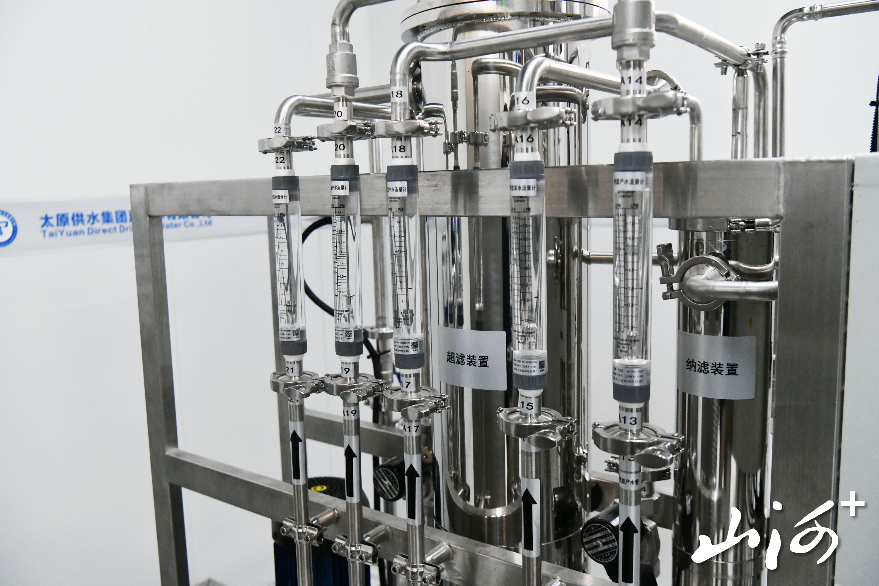 走进直饮水中央泵房,山西晚报·山河+记者看到,石英砂过滤器、活性炭过滤器、介质过滤器、原水箱、净水箱等水处理装置和食品级304不锈钢管道精密连接,在这些高端设备的一级级过滤和重重消杀后,“自来水”变成了“直饮水”。