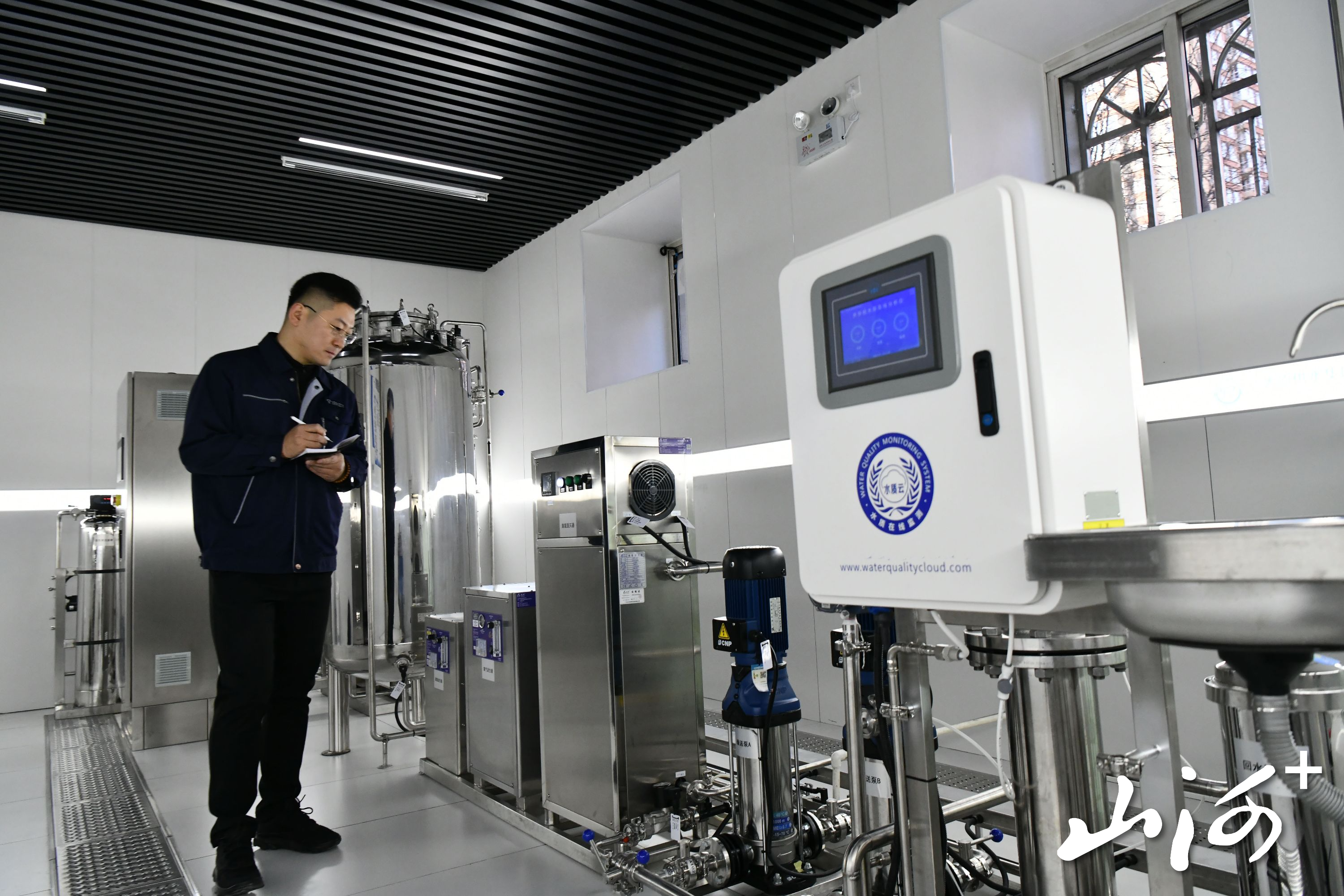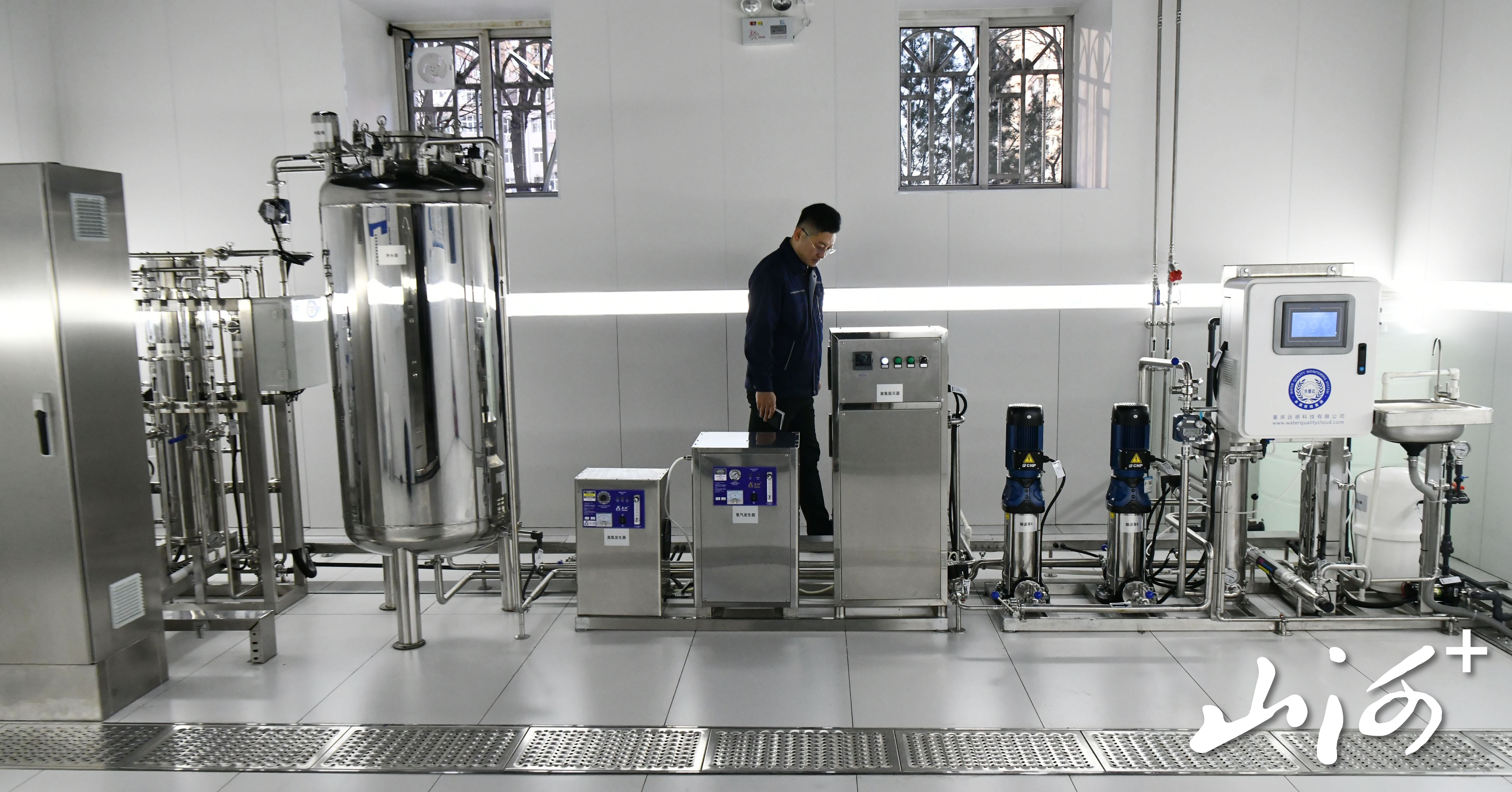山西晚报·山河+记者看到,这套净水设备采取全自动控制,对源水水质、净化后的水质在线监测,浊度、臭氧余量、温度、pH等指标直接在控制器上显示数值。数值一旦出现异常,监测设备就会发出警报。