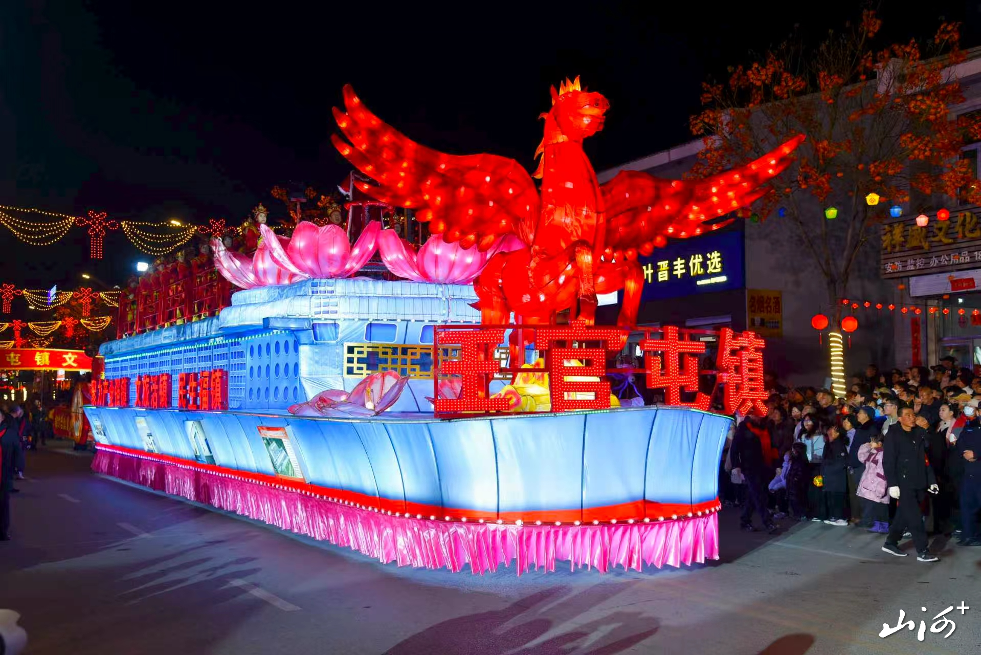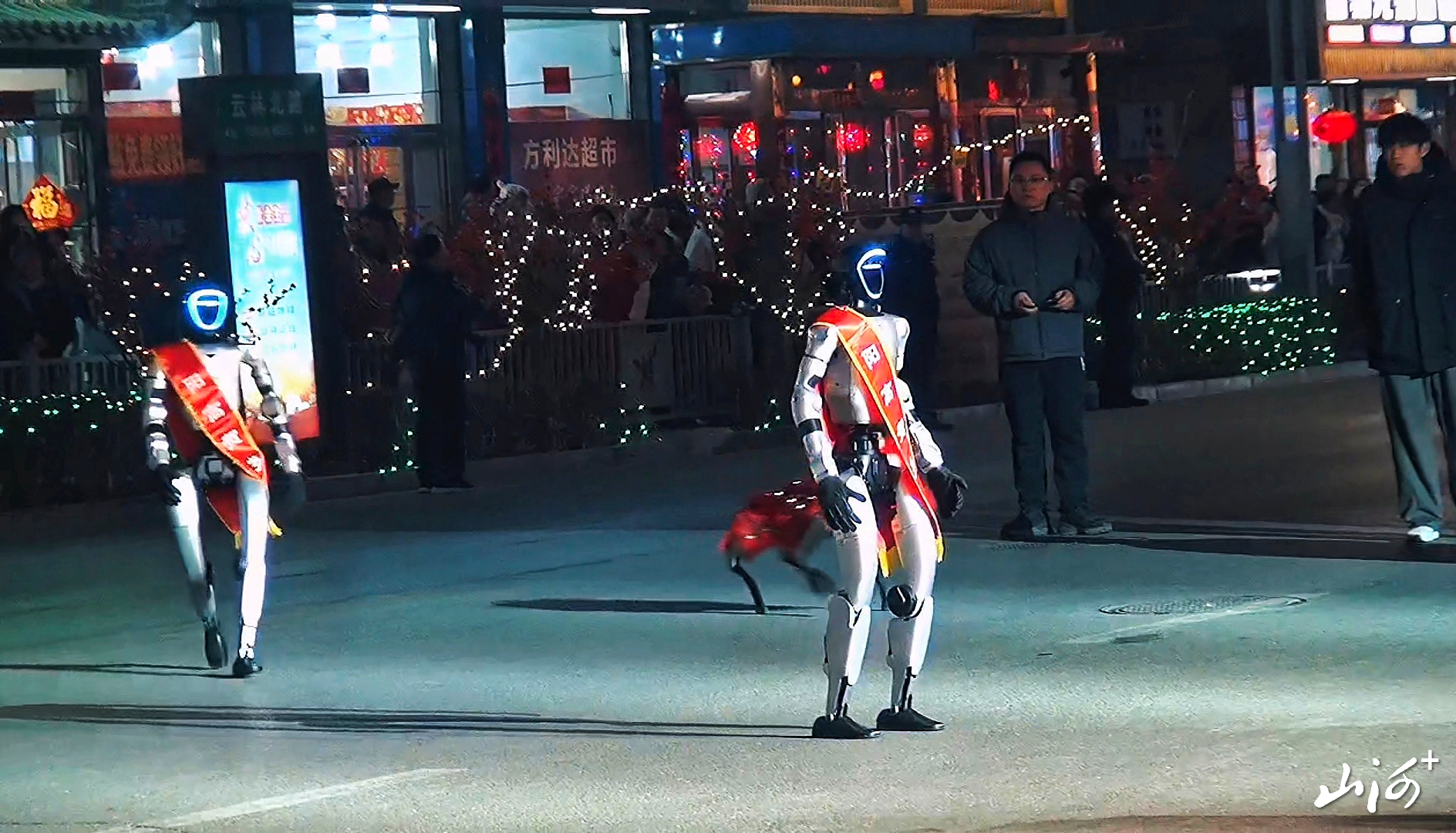 由县文旅局精心组织的春晚同款智能机器人、机器狗亮相街头,与民俗彩车并肩巡游、定点互动表演。它们动作灵活、憨态可掬,时而列队行进、时而灵动互动,以新潮姿态融入传统民俗,瞬间点燃全场热情,现场人气爆棚、火爆全城,成为元宵佳节最亮眼的风景线。