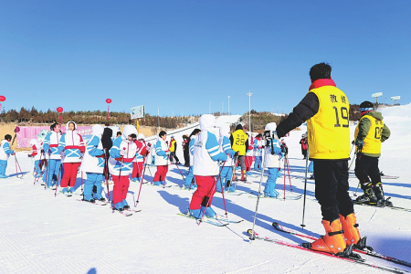 青少年在晋中九龙国际滑雪场体验冰雪带来的乐趣。山西经济日报记者 王昕 摄