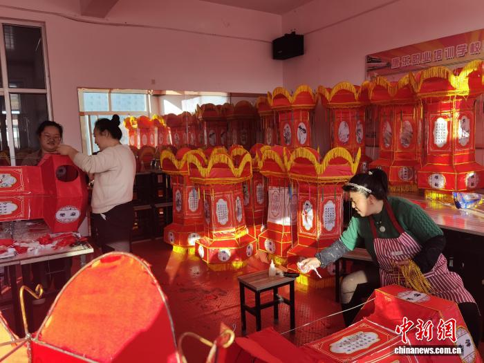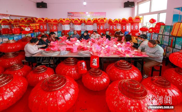 元宵节将至,在山西省长治市屯留区康乐汇商贸有限公司手工灯笼生产车间内,数十名工人正有序制作灯笼,一派繁忙景象。