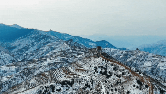 当千年长城被白雪裹上银纱