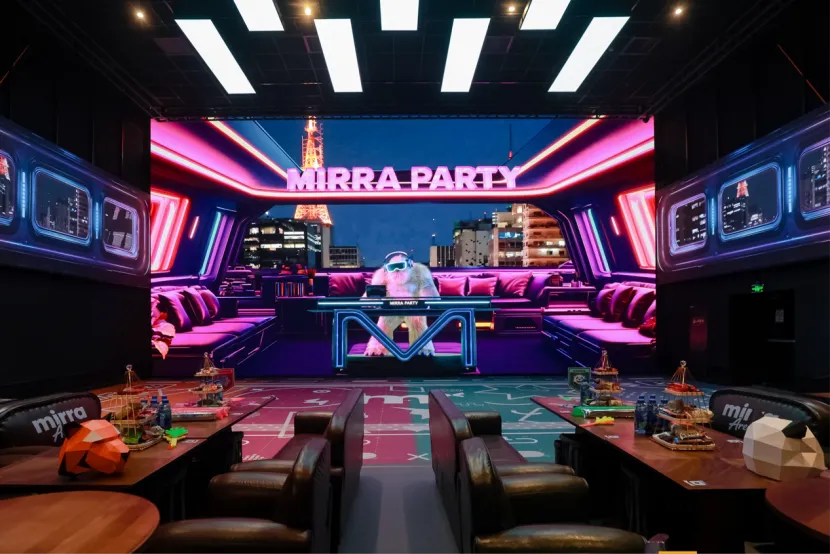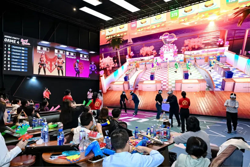 以耀莱成龙影城的Mirra奇镜派对融合厅为例,该空间打造了330㎡的双层沉浸式场景,融合电影、游戏、演出、餐饮等多重业态,使影院从单一的观影场所,进化为集“玩、观、食、社交”于一体的文化消费综合体。