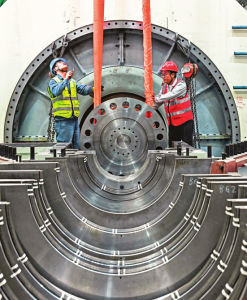 国电电力大同湖东发电有限公司1号机组发电机转子穿装作业一次成功。山西日报记者 刘通 山西日报通讯员 张占兵摄
