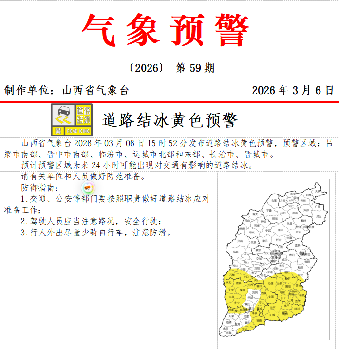 道路结冰黄色预警