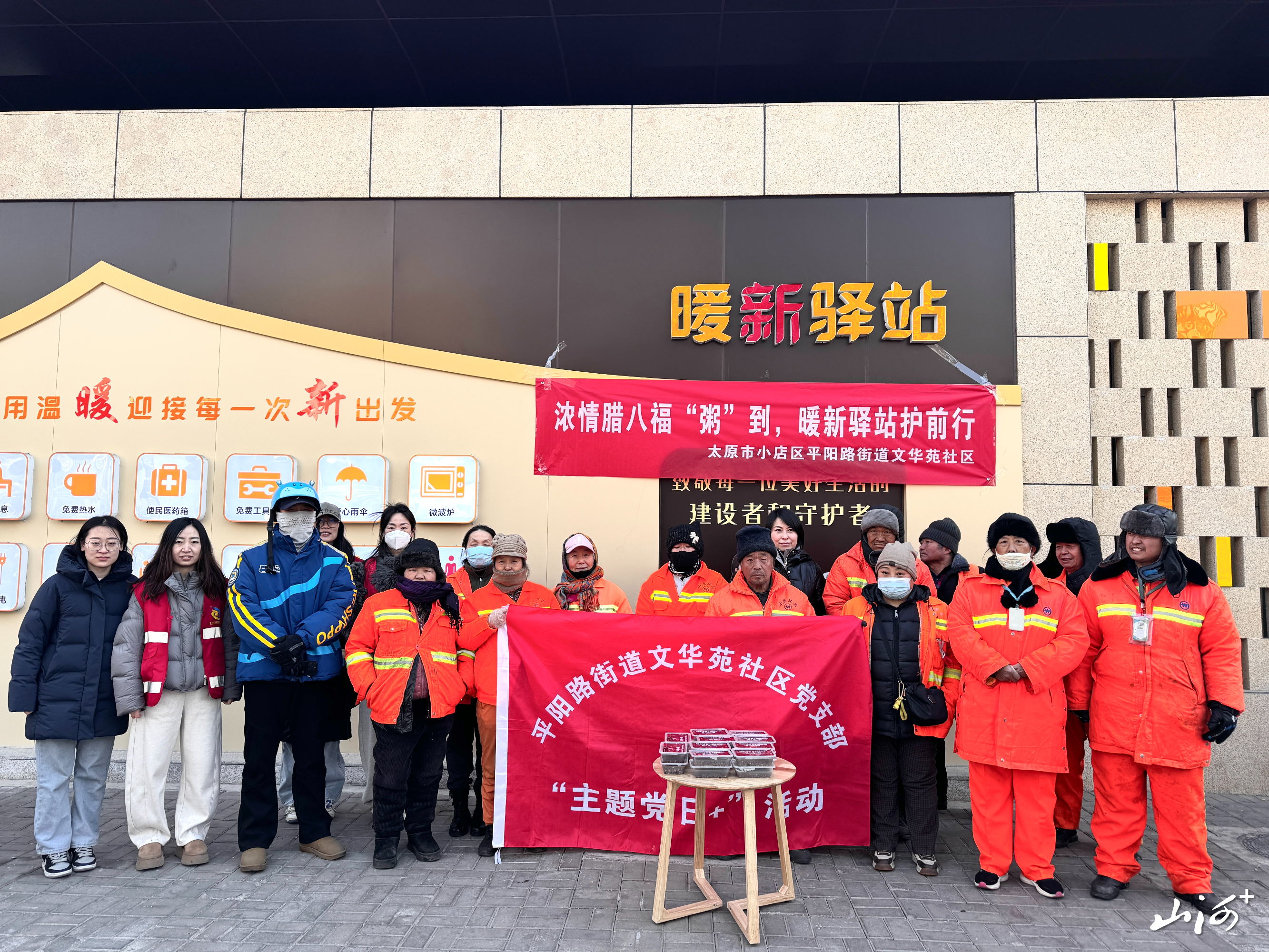 山西晚报·山河+讯   腊八时节,暖意融融。1月26日上午,太原市小店区文华苑社区位于平阳路长风街口的暖新驿站内,五谷香气氤氲,社区志愿者为外卖骑手、快递员、网约车司机、环卫工等户外工作者送上热气腾腾的腊八粥,在寒冬里为城市的“奔跑者”们送上暖心关怀。