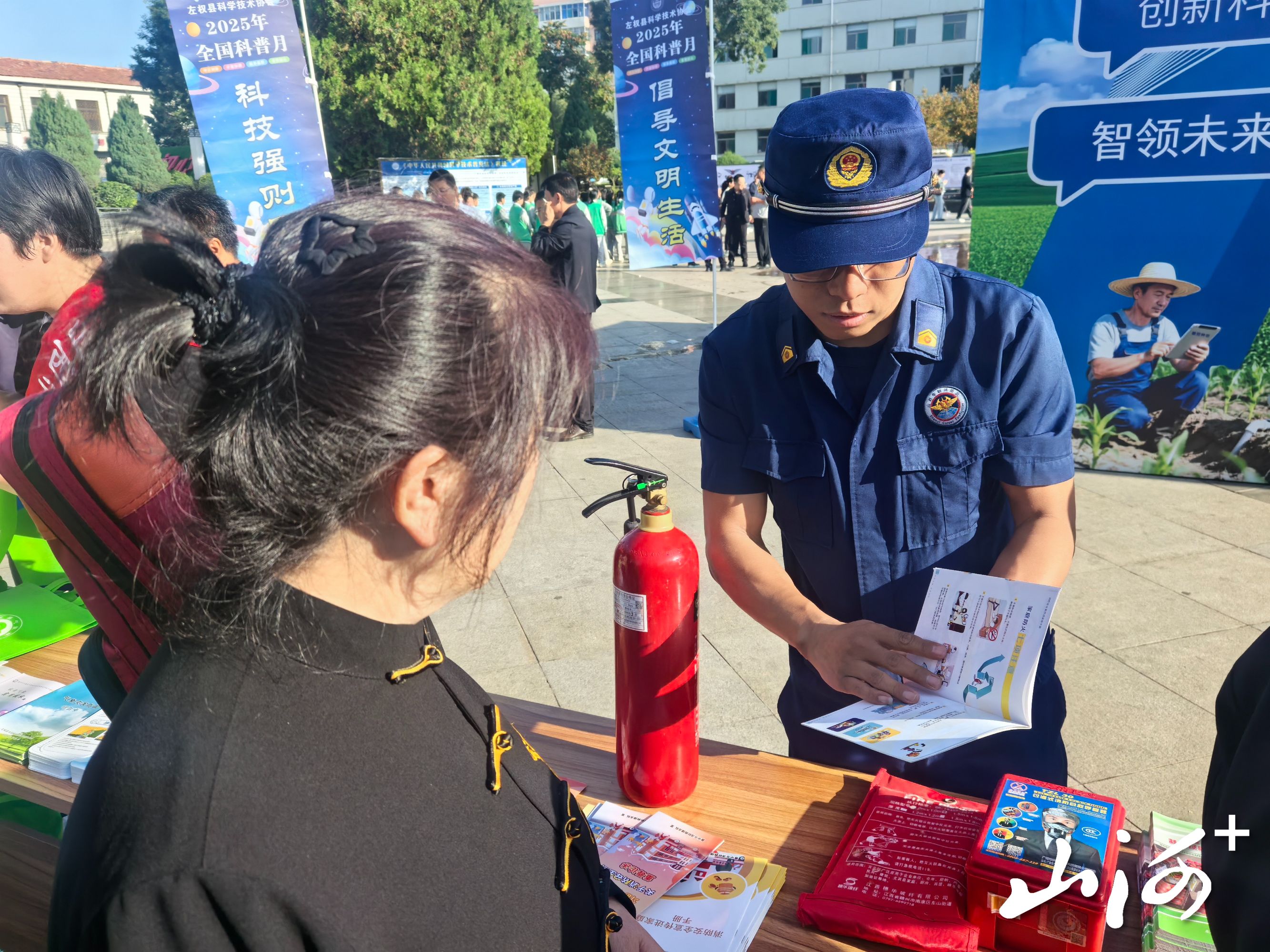 山西晚报·山河+讯 9月10日,左权县科普宣传月活动全面启动,左权县消防救援大队积极参加,通过设置咨询台、现场教学和互动体验等形式,向过往群众详细讲解了灭火器、防烟面罩等消防器材的正确使用方法,并指导如何鉴别与购买合格的消防产品。活动旨在提高大众的消防安全意识,增强应对突发火灾事件的能力。