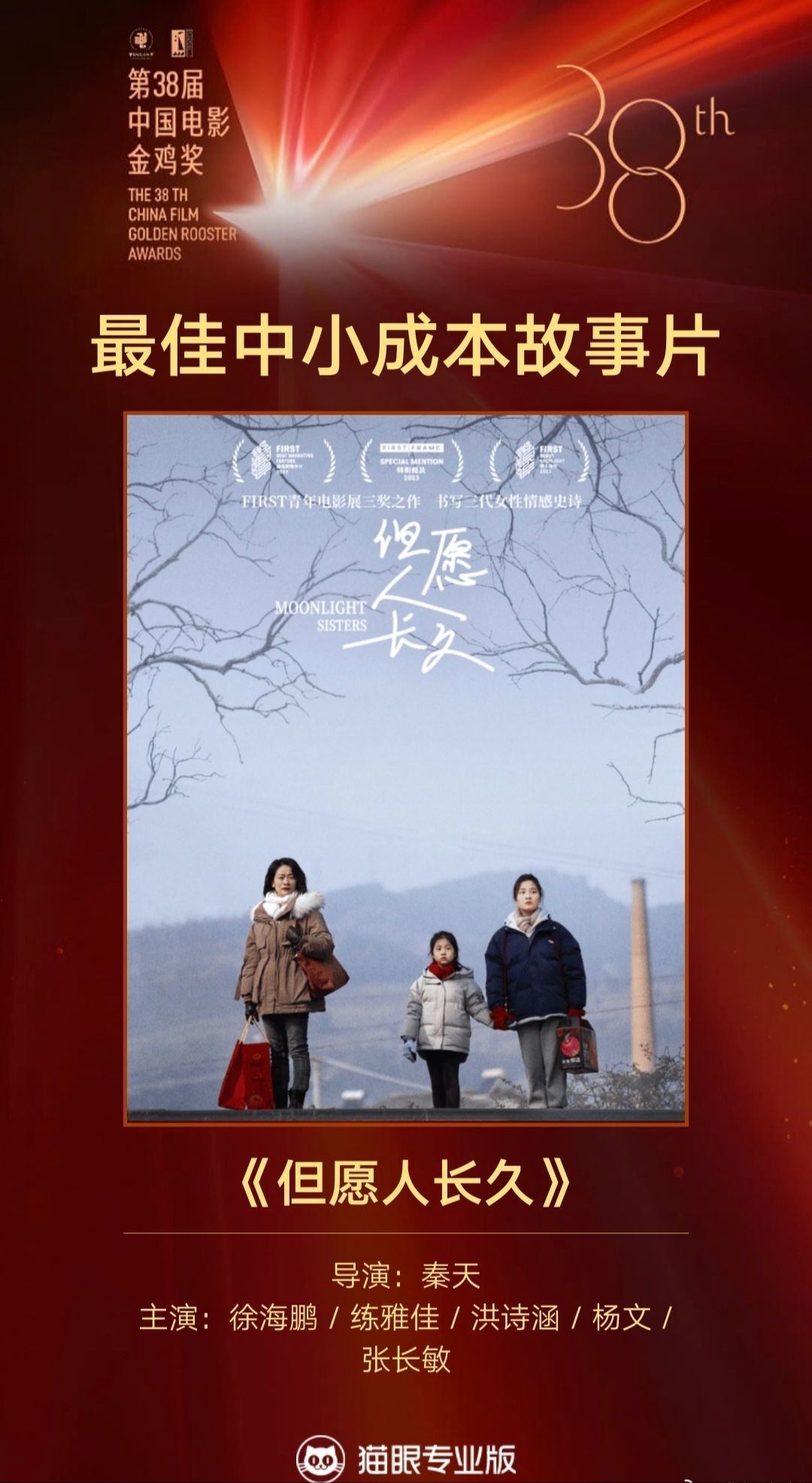 《但愿人长久》由秦天执导,池清波担任联合制片人,影片聚焦成都三代女性的命运流转,凭借扎实叙事与人文关怀,荣获第38届中国电影金鸡奖最佳中小成本故事片奖,并斩获第17届FIRST青年电影展最佳剧情长片,成为近年青年电影创作的标杆之作。