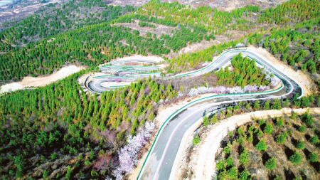 灵丘县红石塄乡北泉村乡村公路两侧山花烂漫。