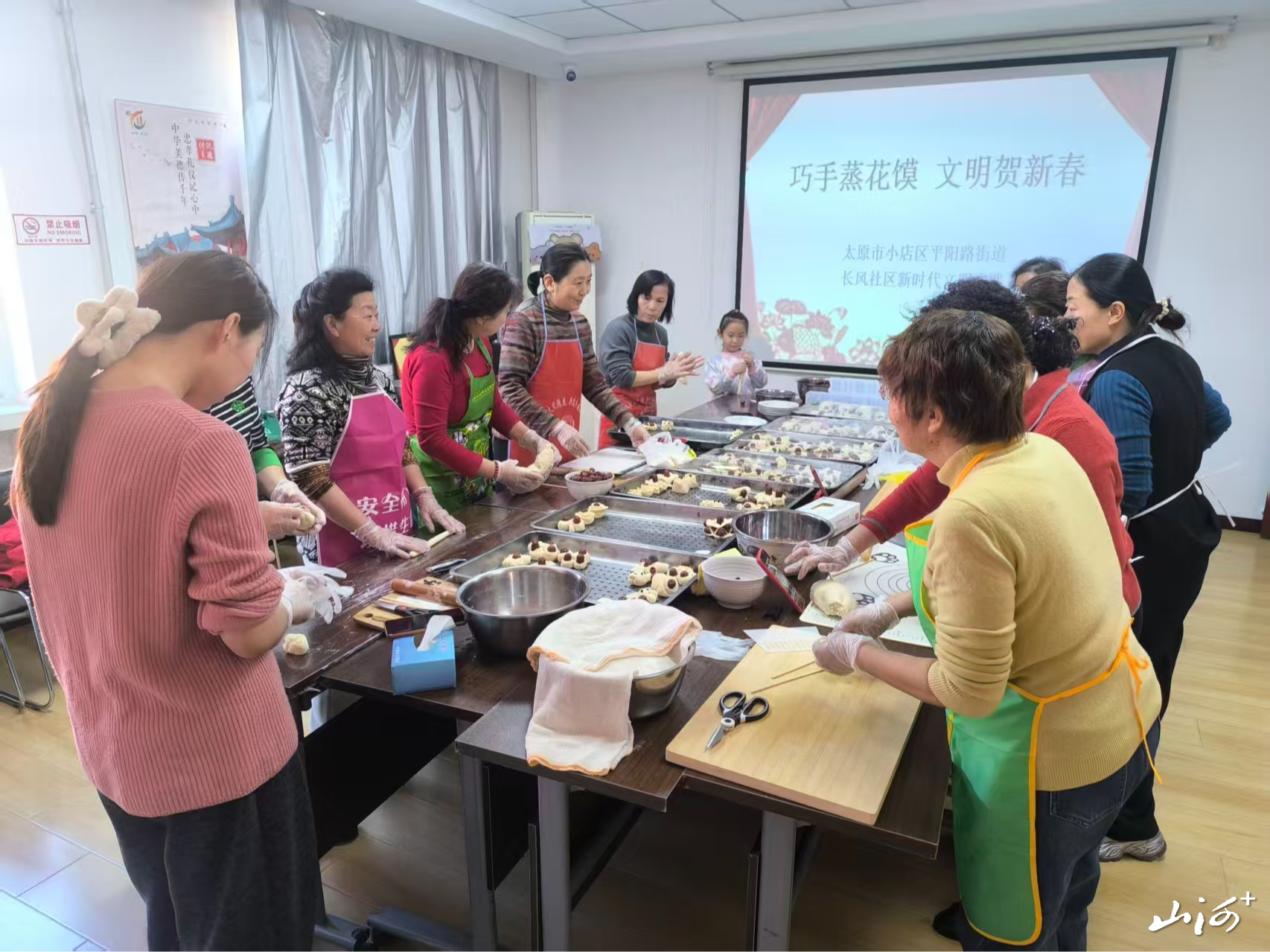 山西晚报·山河+讯 过年蒸花馍是我国北方地区的传统年俗之一,寄托了人们对新一年的美好祈愿,寓意着生活蒸蒸日上。2月2日下午,太原市小店区平阳路街道长风社区新时代文明实践站组织辖区居民开展了我在文明实践站过大年“巧手蒸花馍 文明贺新春”活动。