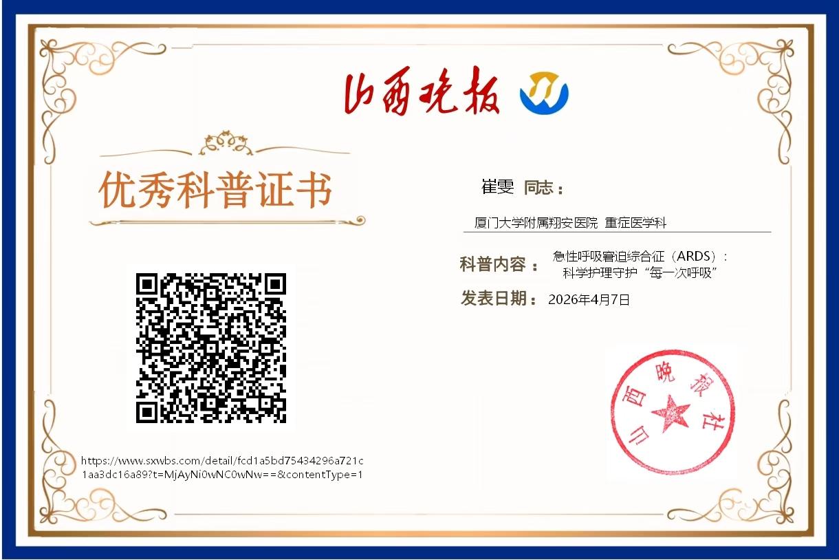 作者:厦门大学附属翔安医院 重症医学科 崔雯